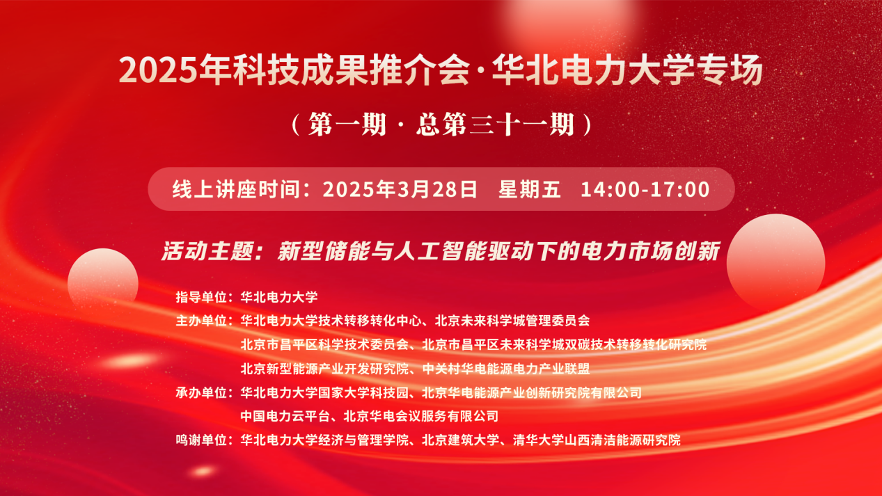 2025年華北電力大學(xué)科技成果推介會(huì)(第一期·總第三十一期)【講座主題】新型儲(chǔ)能與人工智能驅(qū)動(dòng)下的電力市場創(chuàng)新 【講座時(shí)間】3 月 28 日 星期五? 14:00-17:00 【講座地點(diǎn)】https://wlwth.xetlk.com/sl/16Ue76 ?????????? 王航杰15321299518 ? 1.【主講人】譚忠富? ...主講人:譚忠富、董福貴、許儒航、秦光宇、凡航、許士琦、時(shí)間:2025-03-28 14:00地點(diǎn):線上講座 -