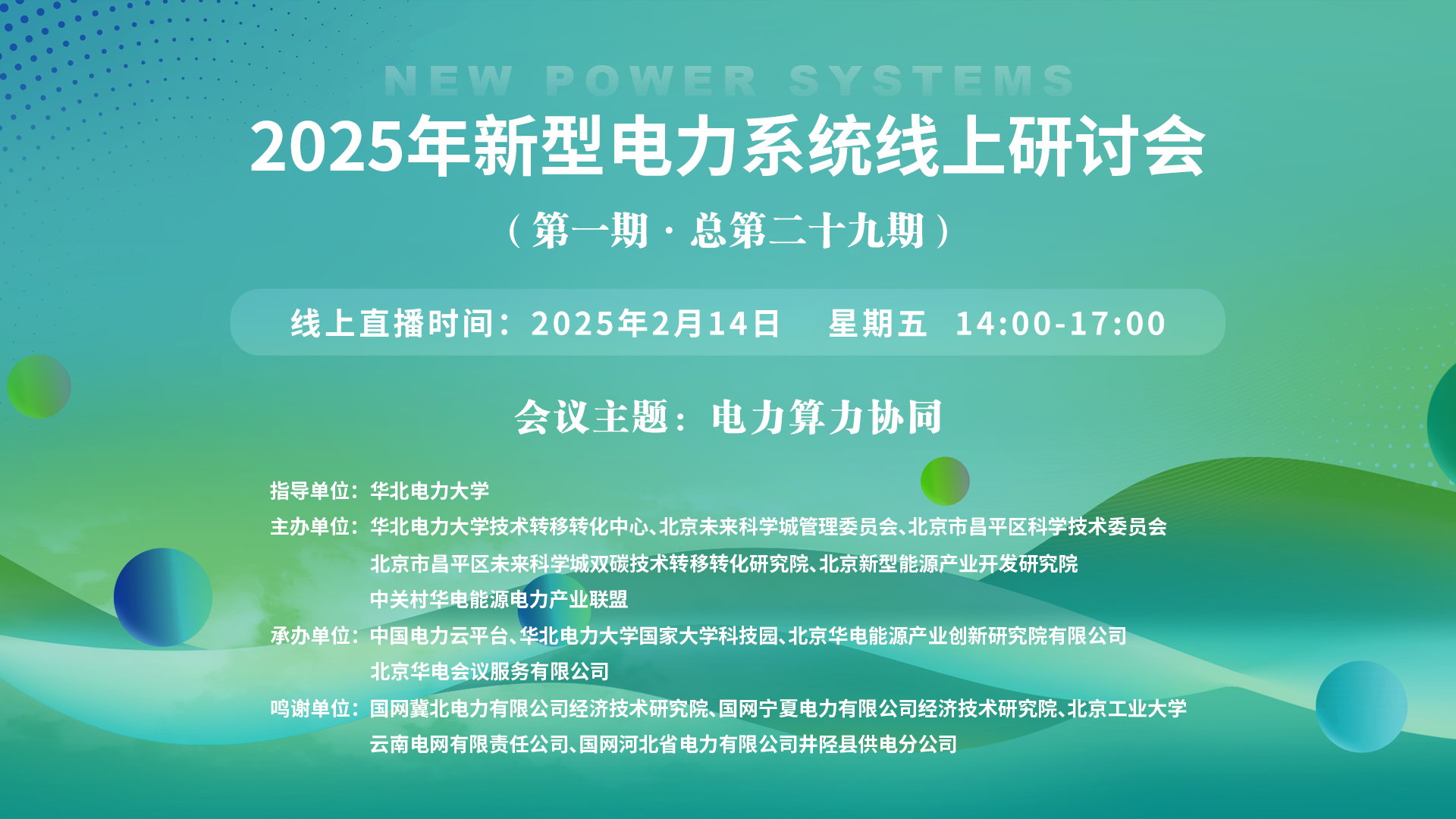 2025年新型電力系統(tǒng)線上研討會(第一期·總第二十九期)一、講座主題:電力算力協(xié)同 二、講座時間:2025年2月14日 星期五 14:00-17:00 三、講座地點:線上直播:https://wlwth.xetlk.com/sl/4CqKTT(聯(lián)系人劉敏13331120445) 四、主講人信息: (一)主講人:岳昊 主講人簡介:岳昊,博士,教授級高級工程師...主講人:岳昊、趙利寧、丁肇豪、周峰、高嘯、李申章時間:2025-02-14 14:00地點:線上講座 -