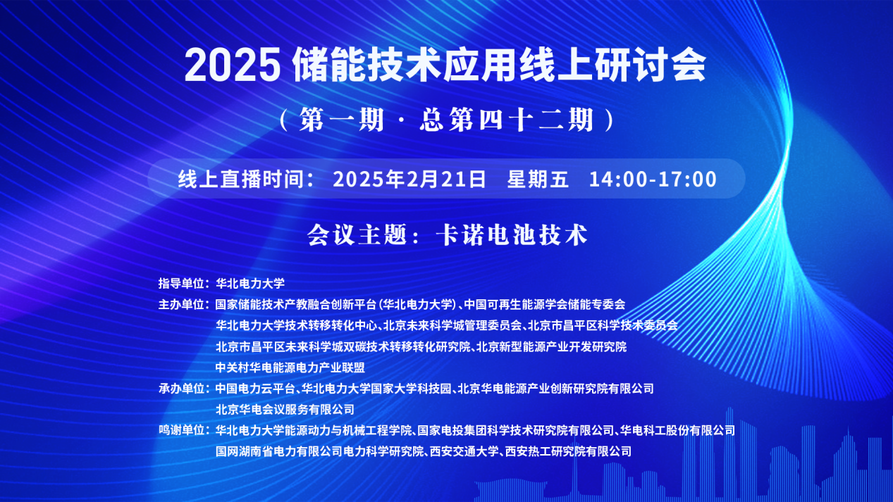 2025年儲能技術(shù)應(yīng)用線上研討會(第一期·總第四十二期)【講座主題】卡諾電池技術(shù) 【講座時間】2 月 21 日 星期五? 14:00-17:00 【講座地點】https://wlwth.xetlk.com/sl/2vmdOv ?????????? 王航杰15321299518 ? 1.【主講人】廖志榮? 華北電力大學(xué)能源動力與機(jī)械工程學(xué)院副教授、碩導(dǎo) 【...主講人:廖志榮、姜曉霞、付宏偉、陳珣、趙永亮、宋曉輝時間:2025-02-21 14:00地點:線上講座 -